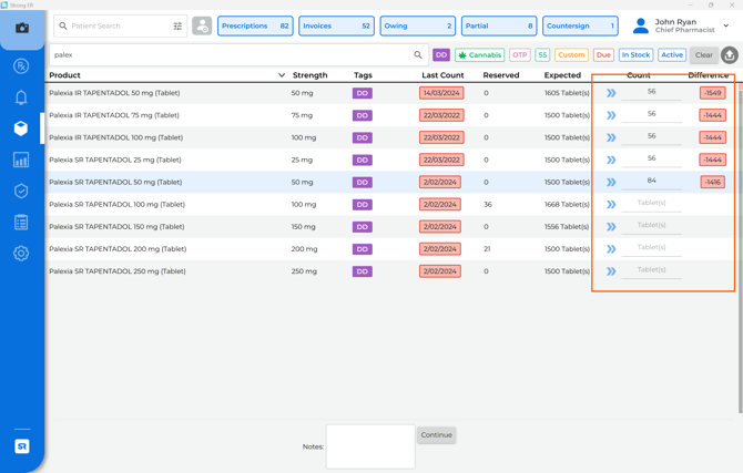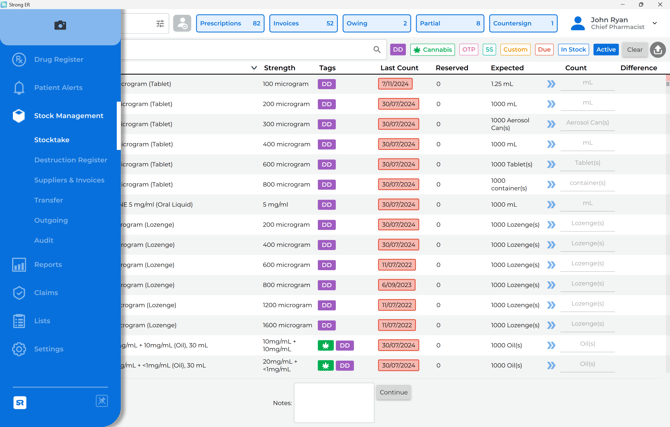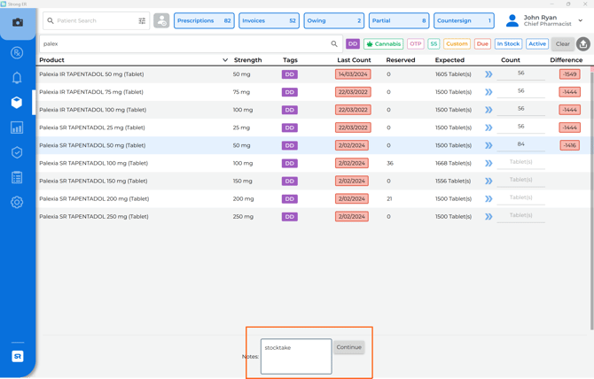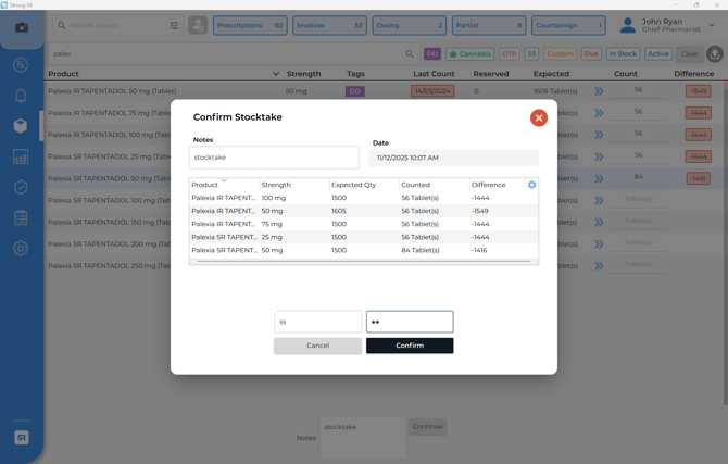 - Confirm the stocktake and finalise the stocktake by entering your user credentials when prompted.