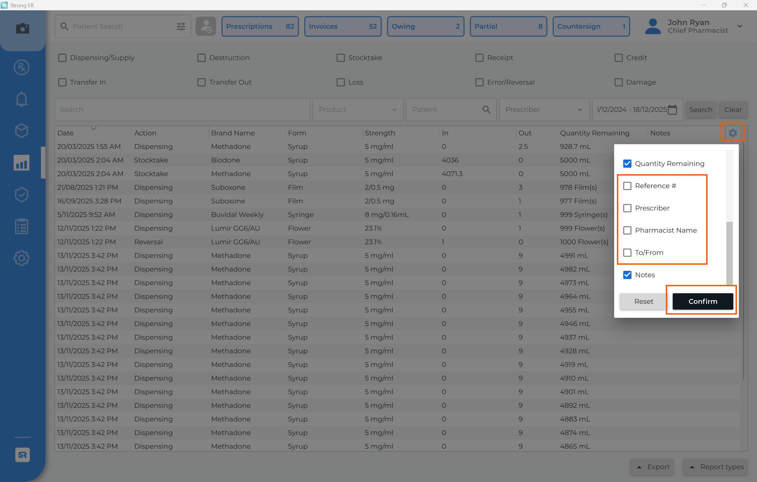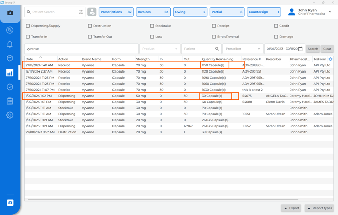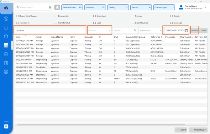If the product doesn't appear on the specific date, increase the date range to locate the last time a transaction occurred.
