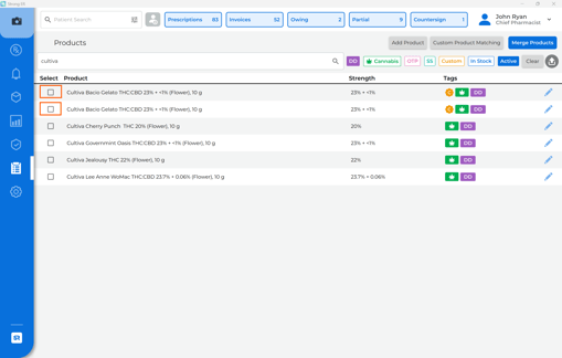 Use the checkboxes on the left side of the product listings to select all the products you wish to merge.