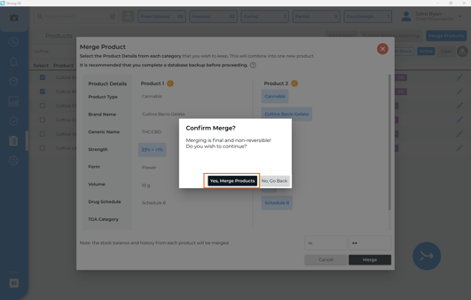 A final merge confirmation pop-up will appear. Click Yes, Merge Products to complete the process.