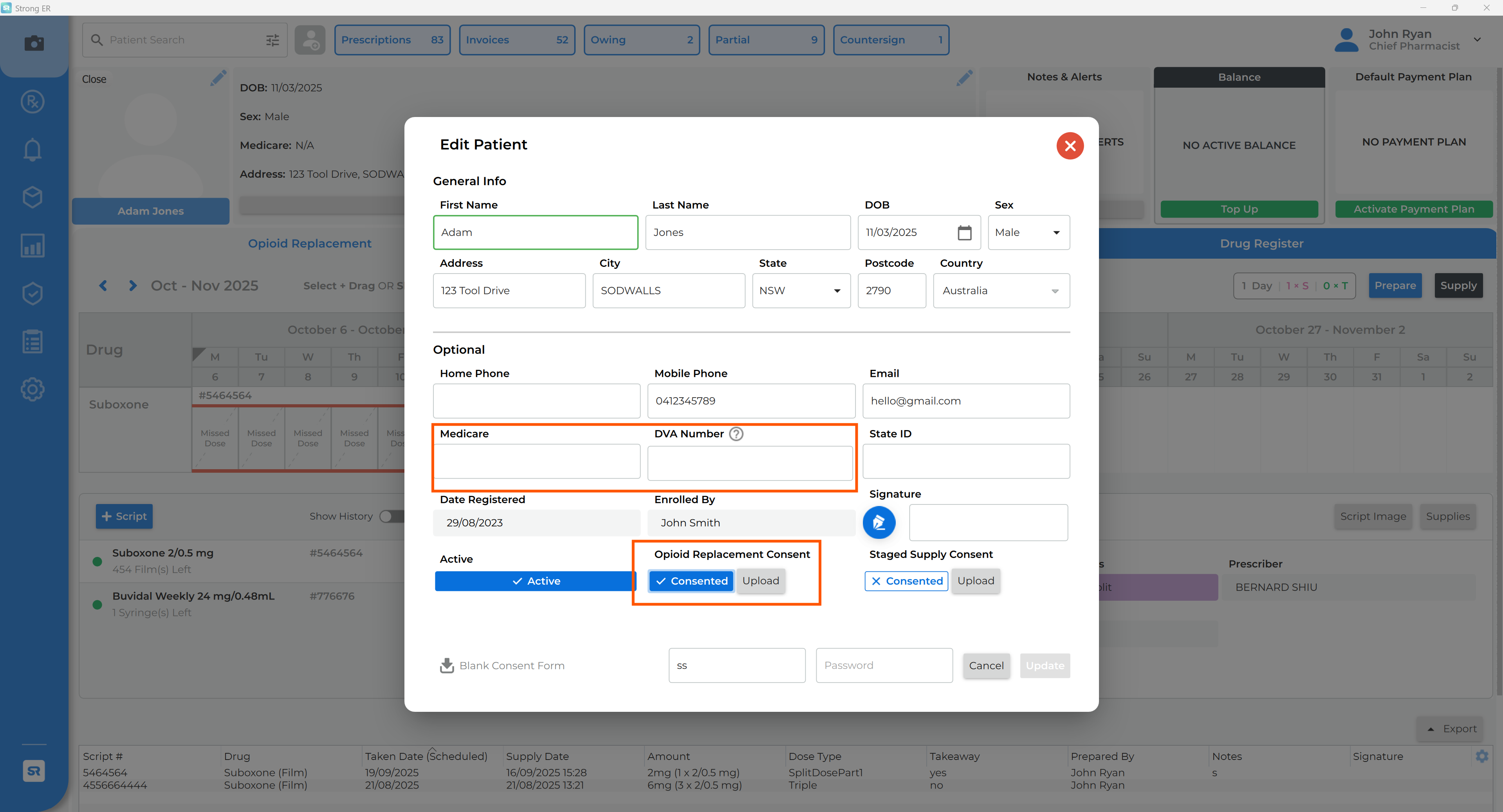 Update the patient's Medicare or DVA number if it is incorrect or missing.