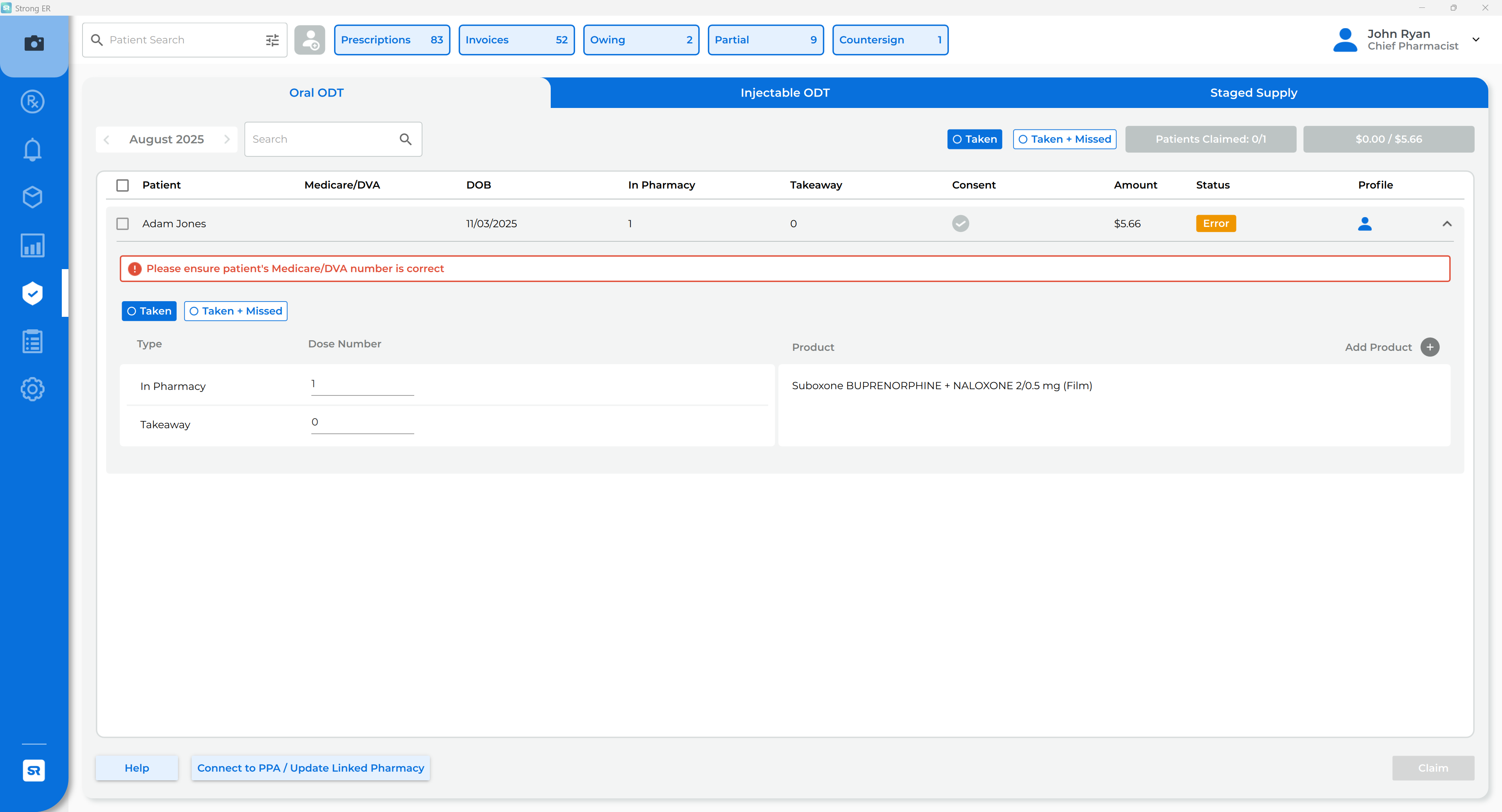 Why does ODT patient have an Error status and the system won't let me claim for that patient?